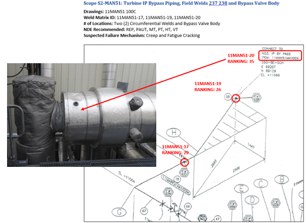 - Risk-ranking of piping system to determine high-risk areas for NDE Inspection
